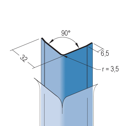 und Krankenhäusern. Zur nachträglichen Klebe-Montage. Mit seitlichen Kantungen entlang des Profilrandes für einen optisch
